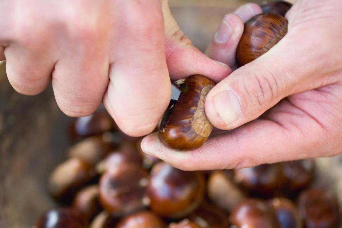 Revisa bien las castañas para sacar aquellas que tengan agujeros o que tengan partes muy blandas, ya que esto podría ser un indicio de que tienen gusanos. Lava bien y luego seca las castañas que estén en buen estado y vayas a usar.