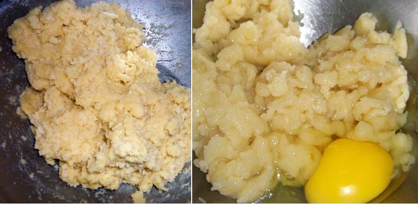 Verás que rápidamente la masa se torna sólida hasta el punto de formar una bola, en este momento retírala del fuego. Ahora, haz un pequeño volcán con la masa y añade los huevos de uno en uno. Hasta que no se haya mezclado bien el primero huevo no añadas el segundo, y lo mismo con el tercero, puesto que así te será más fácil integrarlos.