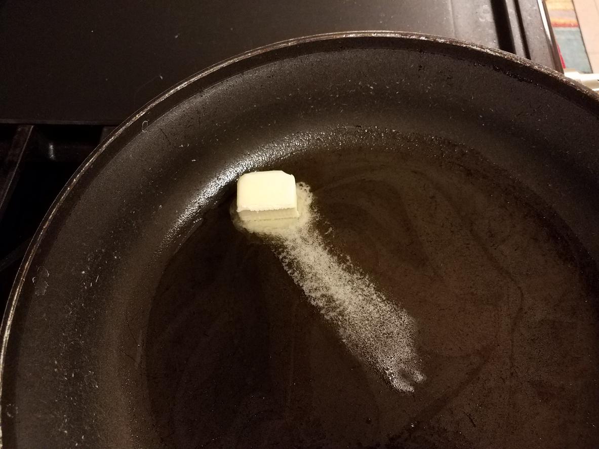 Pon a fuego alto una sartén y engrasa con un poco de aceite o mantequilla. Es importante que la sartén esté bien caliente antes de engrasarla.