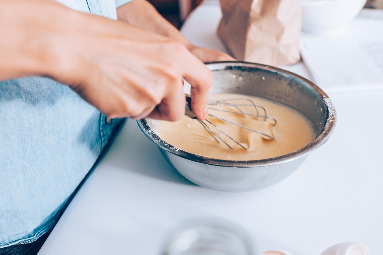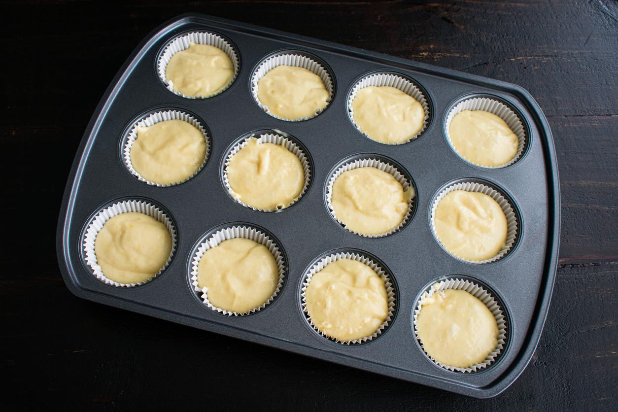 Una vez tengamos listo y por separado los ingrediente secos y los líquidos, llegará el momento de mezclarlos. Para ello, sobre el bol de sólidos más grande, vamos añadiendo alternamente la mezcla de líquidos y una proporción de leche. Cuando los ingredientes de esta tanda hayan quedado bien integrados, volveremos a repetir la operación y así hasta en tres ocasiones para conseguir la mejor consistencia y hacer que los cupcakes queden jugosos, ligeros y esponjosos.