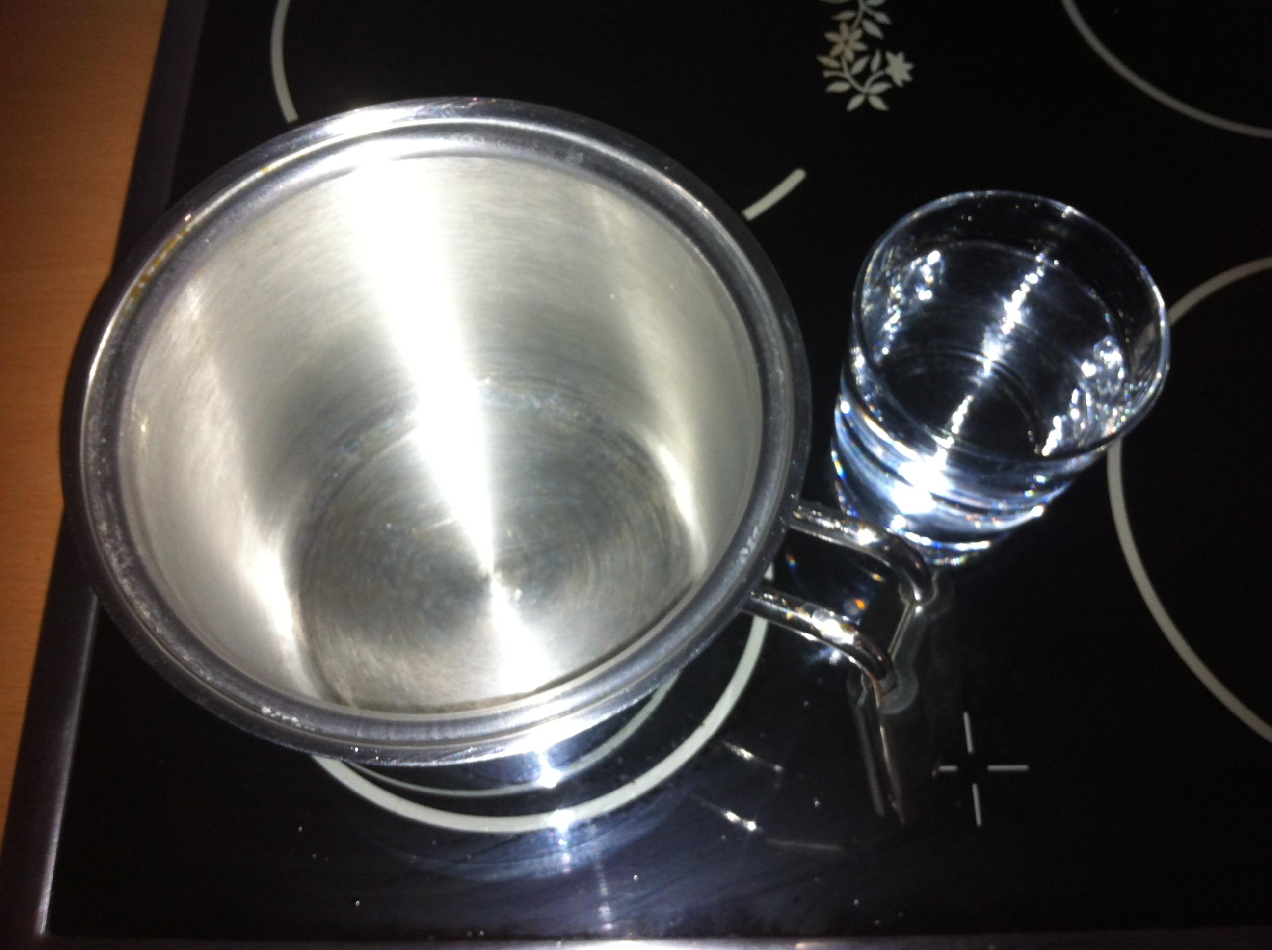 Mientras se hacen las salchichas, añade un vaso de agua a un cazo con un poco de sal y déjala que hierva.