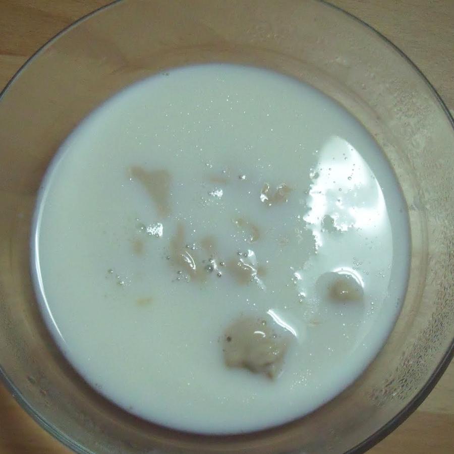 Lo primero que vamos a hacer es mezclar la levadura fresca con la leche tibia, puedes hacerlo con una cuchara. Cuando la levadura se haya disuelto por completo, resérvala. Es importante que la mezcla repose para que adquiera una textura espumosa y los donuts aumenten su volumen.