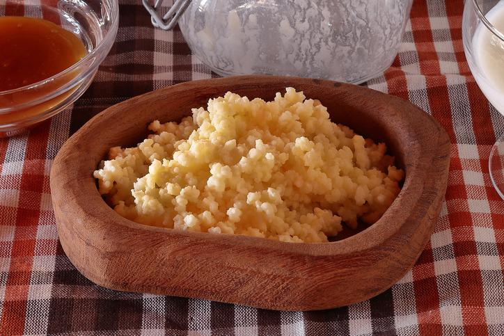 Deja que hierva sin revolver. Pronto verás que de la leche solo quedan grumos grandes y el suero. Una vez reviente el hervor, baja el calor a fuego medio.