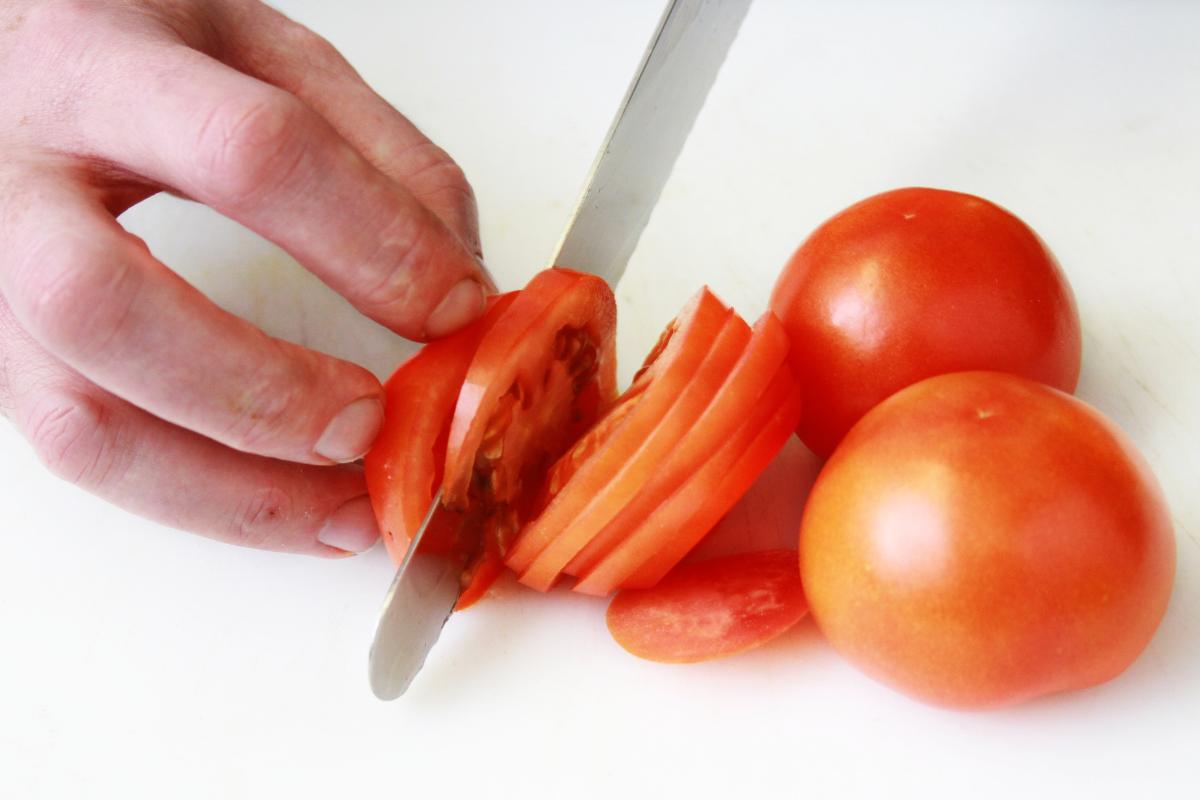 - Algunas veces los tomates pueden estar algo insípidos, así que lo que se puede hacer es cortarlos en rodajas, agregarles un poco de sal y darles unos minutos para que la sal se integre al tomate.