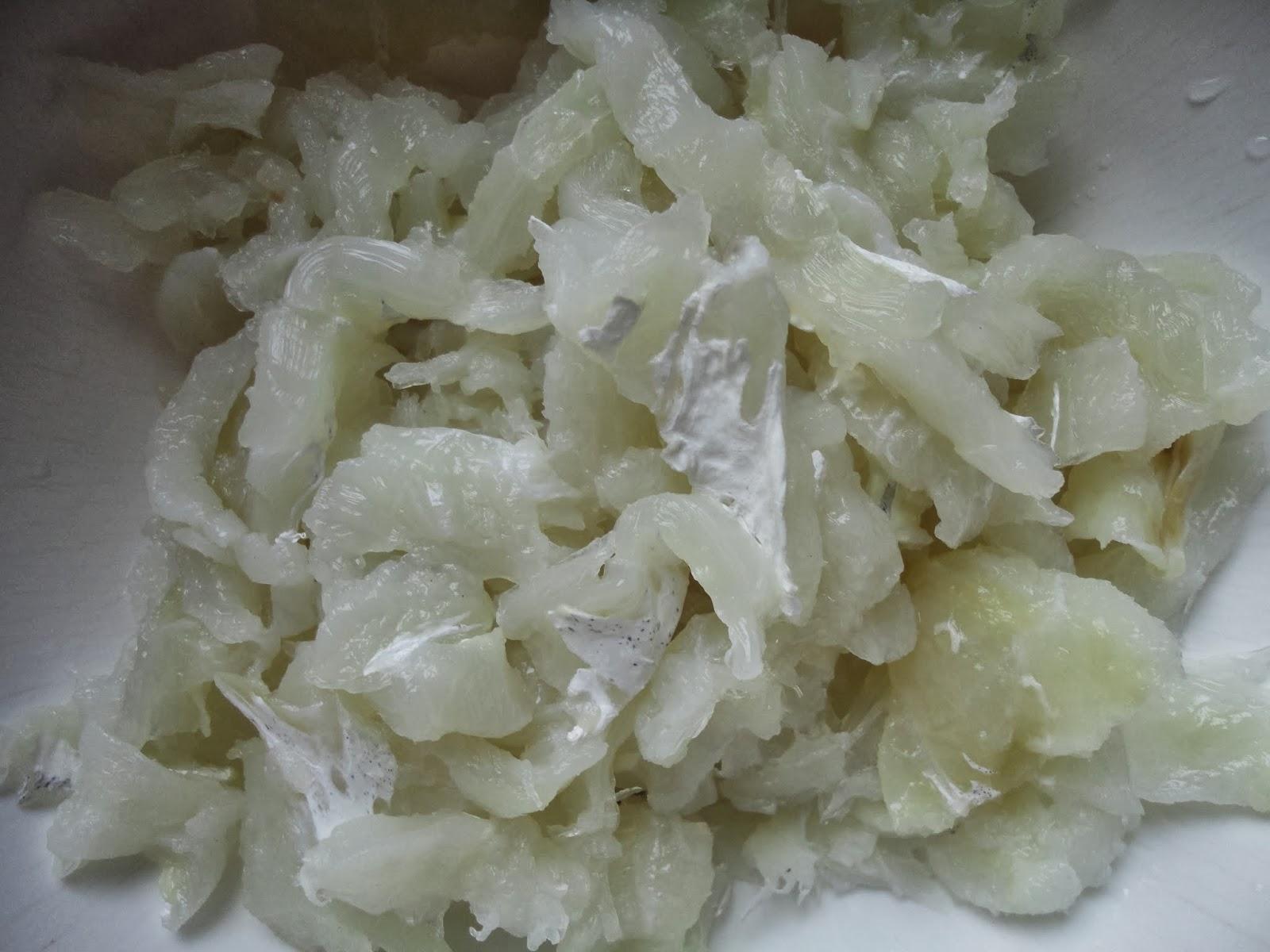 Una vez desalado, deberás escurrirlo y secarlo para eliminar el exceso de agua e ir desmigando el bacalao con las manos, que eslo que en catalán se conoce por esqueixar, de donde procede el nombre del plato. Puedes ir colocándolo en una bandeja o plato grande.
