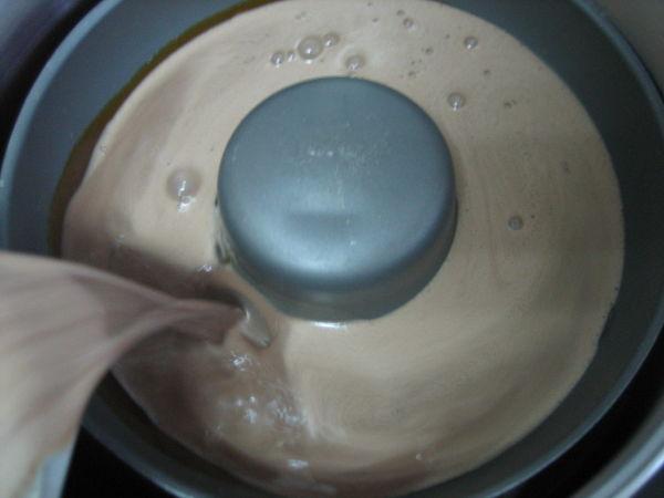 Tu flan casero está listo para la cocción. Vacía la mezcla en la flanera y mételo al horno a 200ºC al baño María durante una hora más o menos.