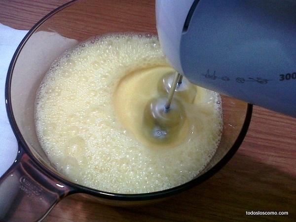 Por otro lado, deberás mezclar en un bol o recipiente los huevos, la leche y el azúcar y batirlo bien para que todos los ingredientes queden integrados. Puedes hacerlo con unas varillas manuales o eléctricas, como prefieras.