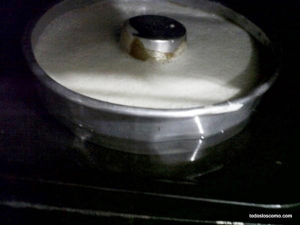 Una vez que tengas la mezcla lista, deberás volcarla en la flanera o moldes individuales para flan y meterlo en el horno al baño María. De este modo, necesitarás poner agua en la bandeja del horno o un recipiente más grande que el molde que puedas poner debajo.