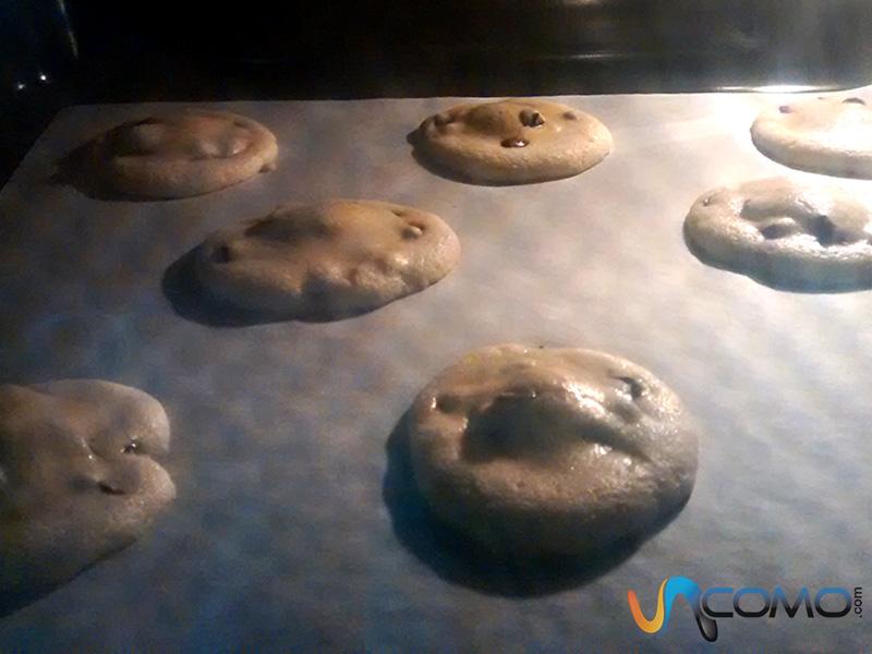 Una vez que las galletas con pepitas de chocolate empiecen a dorarse -pasados unos 10 minutos aproximadamente- podrás sacarlas del horno. Deberás comprobar que no estén crudas, pero no te preocupes si parecen estar blandas, porque después endurecerán.