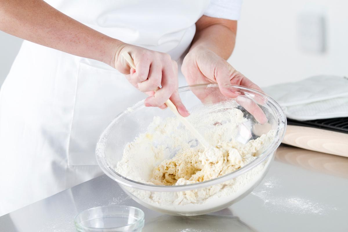 Obtendrás una mezcla uniforme y elástica, que deberás cubrir con papel film. Debes dejar la mezcla cubierta reposando en un espacio en el que no penetre ninguna corriente de aire y que sea cálido. No es recomendable dejarla en espacios fríos. El tiempo de reposo debe ser de una hora y media.