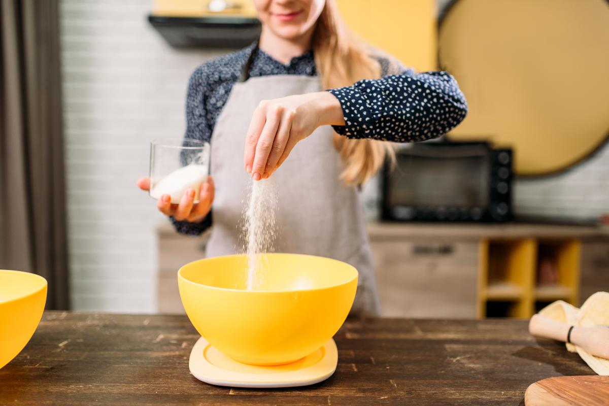 Una vez que haya transcurrido la hora y media, retira el papel film y agrega azúcar perlado a la masa para elaborar los gofres de Lieja. Mézclalo con una cuchara de madera que esté enharinada para asegúrate que el azúcar se ha incorporado de forma correcta.