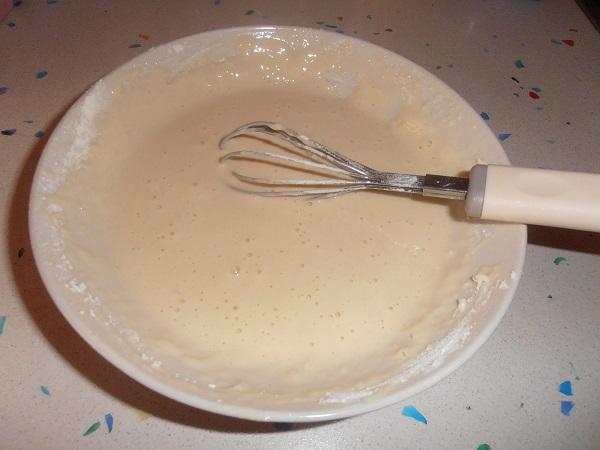 Una vez que haya transcurrido el tiempo de congelación, deberás preparar la mezcla para rebozar el helado frito. En un recipiente junta la taza de harina tamizada, la taza de leche y el huevo. Bate hasta conseguir una mezcla libre de grumos.
