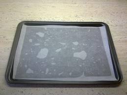 Poner un papel vegetal para el horno en una bandeja. Untar la bandeja con un poco de mantequilla y colocar todos los hojaldritos encima, separados los unos de los otros.