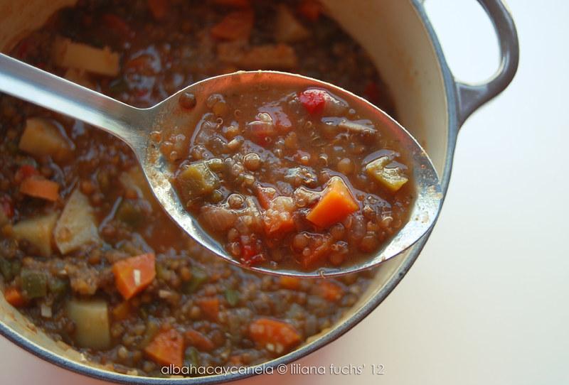 Si durante la cocción notas que el guiso se espesa demasiado o se queda sin líquido, añade un poco de agua caliente o caldo, nunca frío, para no cortar la cocción de las lentejas.