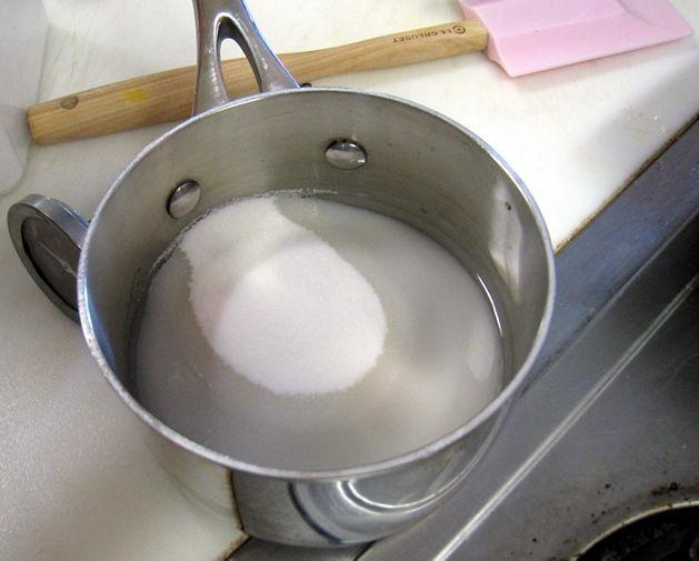 Combina 2 tazas de azúcar granulada, 1/4 taza de agua y 2/3 taza de jarabe de maíz en una cacerola pequeña. Coloca la mezcla en el fuego hasta que hierva. Aquí necesitarás un termómetro de caramelo y estar pendiente de que la temperatura alcance 117º C, el llamado punto de bola suave.
