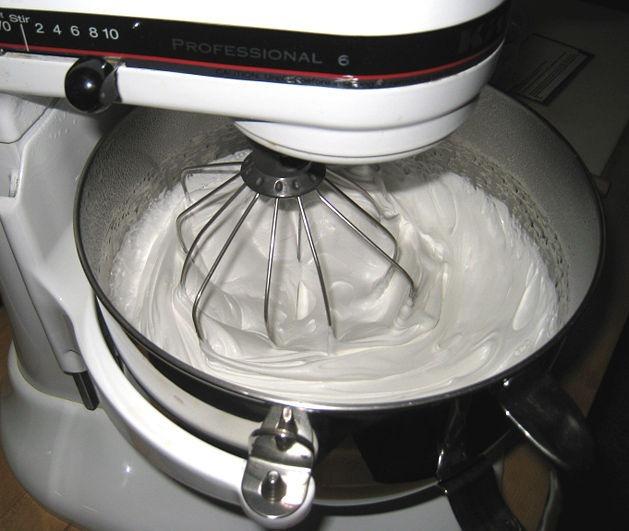 Vierte la mezcla de azúcar hirviendo en la mezcla de gelatina y comienza a batir a toda velocidad. Mientras se mezcla, agrega la sal y bate por lo menos durante 15 minutos. Agrega el extracto de vainilla u otro saborizante al final de los 15 minutos. En esta etapa, agrega también el colorante si lo deseas.
