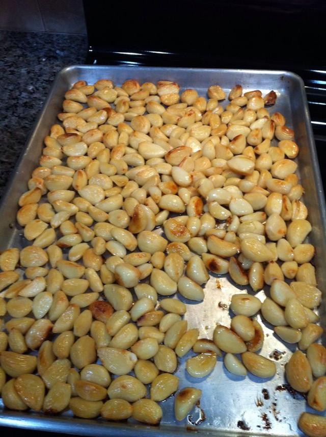 Luego quita la bandeja con los ajos del horno y mezcla el ajo aproximadamente cada 10 o 20 minutos hasta que estén cocidos.