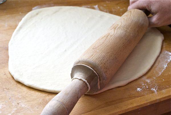 Una vez que la masa de pizza haya doblado su tamaño aproximadamente, ya podremos cortarla en las porciones que queramos y darle forma con la ayuda del rodillo. El grosor dependerá del gusto de cada uno, si preferimos masa fina o más gruesa.