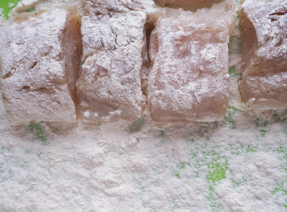 En una sartén, vierte aceite en cantidad y ponlo en el fuego para que se vaya calentando mientras rebozas el pescado.