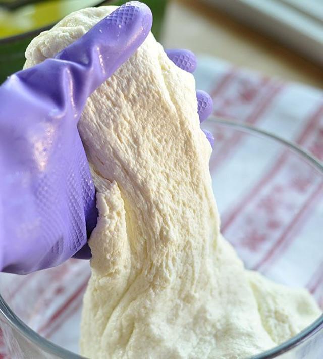 Calienta la cuajada durante otros 30 segundos en el microondas y comprueba su temperatura interna. Si la temperatura es alta, continúa con el estiramiento de la cuajada. Si no es así, continúa en el microondas 30 segundos hasta que eleve la temperatura.