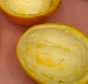 Corta las naranjas por la mitad y sacales todo el jugo. Aprovecha y hazte un buen zumo de naranja o una mermelada de naranja.