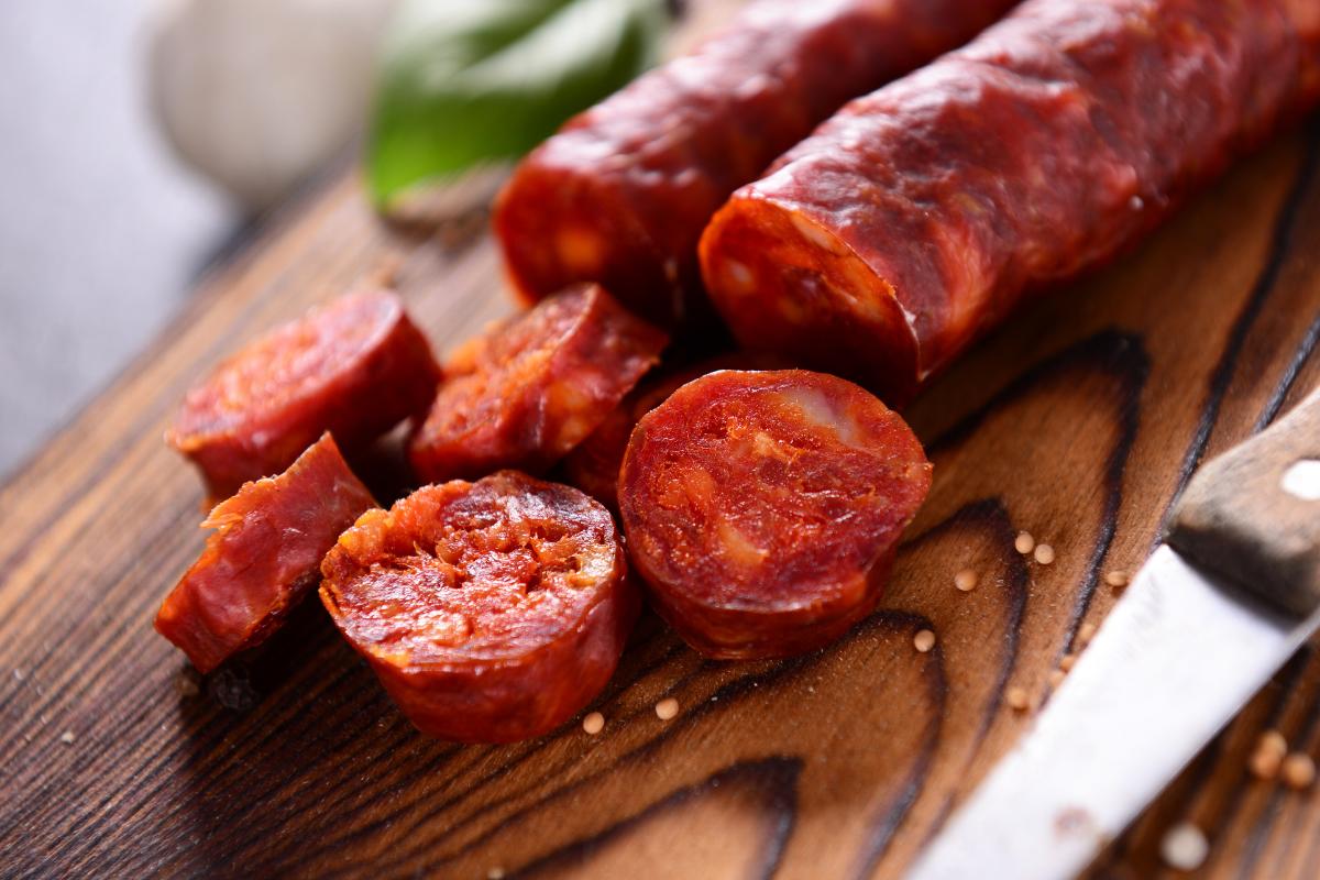Se corta el chorizo en trozos y se añade a la olla. Se debe ir removiendo. El aceite de oliva, la cebolla, el pimiento, los ajos picados y el chorizo producen una combinación ideal con unos sabores particulares muy deliciosos.