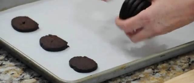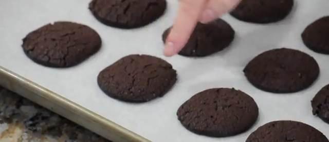 Estas obleas de chocolate se colocan a aproximadamente 3 centímetros unas de otras y se hornean durante 10 a 12 minutos o hasta que las galletas estén doradas y tienen grietas.