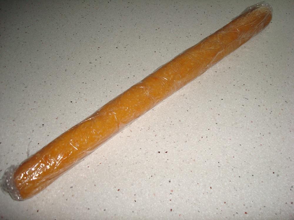 Hacer unos cilindros y enrollar con film transparente. Dejar reposar unas horas en la nevera.