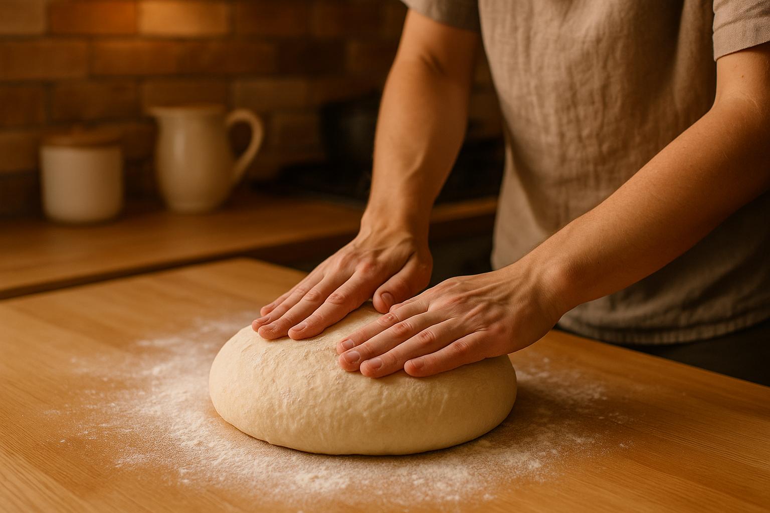 Cuando la masa haya doblado su tamaño, será momento de sacarla del bol y desgasificarla suavemente. Es decir, colócala sobre una superficie plana, ligeramente enharinada, y presiona suavemente con las palmas de las manos para eliminar las burbujas grandes, sin amasar en exceso.