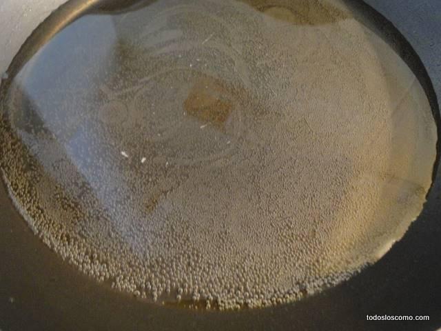 Mientras tanto, ponemos aceite en un sartén (aproximadamente a la altura del alto de las julianas de papa), seremos generosos y no escatimaremos. Yo le suelo poner 1,5 centímetros de aceite y luego pongo el fuego en medio/alto.