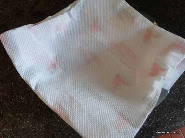 En un plato hondo ponemos papel absorbente para que el aceite quede en el papel, y no en la papa.