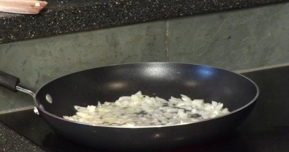 A continuación tendrás que calentar 4 cucharadas de aceite de oliva en una sartén grande a fuego medio. Si no tienes una sartén grande, improvisa con una olla. Agrega las cebollas y cocina hasta que estén blandas y translúcidas durante, aproximadamente, 5 minutos. Después, tendrás que añadir el ajo y cocinar durante un minuto más.