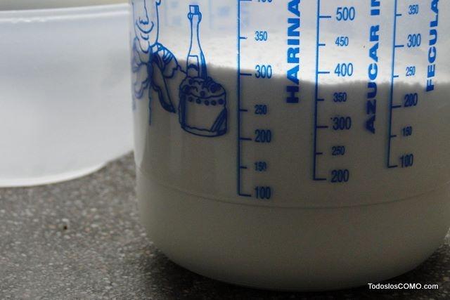 Lo mismo hacemos con el agua… Recuerda que 200 cc equivalen a 200 ml.