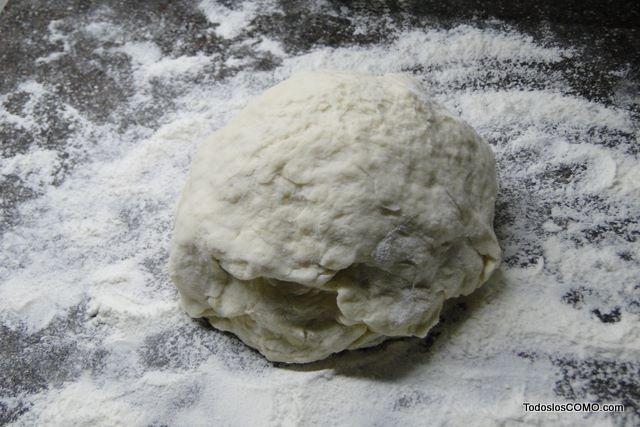 Una vez que agregamos toda el agua es hora de que saquemos la masa para “sobarla” en un lugar limpio enharinado. Si no estamos muy familiarizados con el tema puedo decir que se debe “trabajar” la masa para que se vuelva compacta y homogénea.