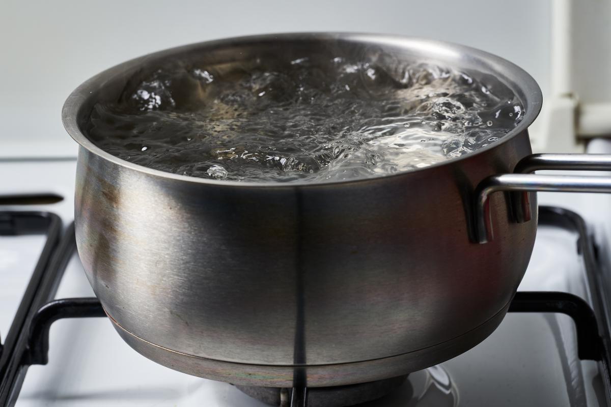 Llena una olla grande con abundante agua y añade las hojas de laurel. Ponla a fuego alto hasta que hierva.