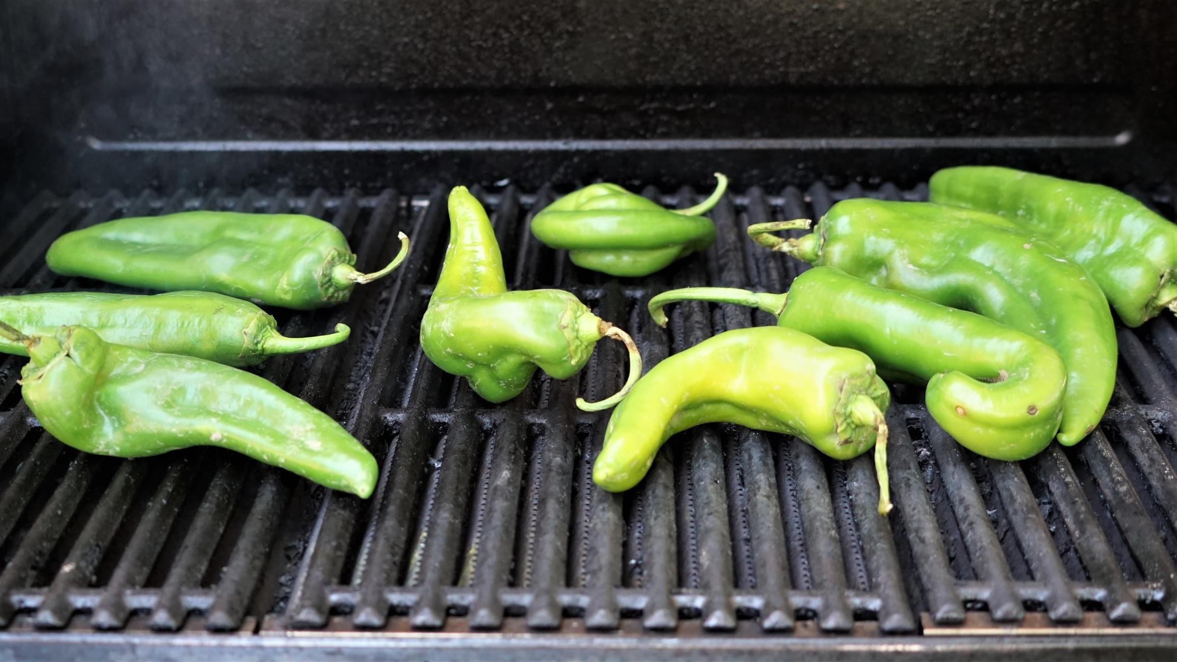 En primer lugar, prepara las rajas poniendo los chiles a asar, bien directamente al fuego, al horno o en una parrilla. Ve dándoles la vuelta para que se queden asados de manera uniforme. En 15 minutos aproximadamente estarán listos. Resérvalos colocándolos en un plato hondo sobre el que deberás poner otro por encima dado la vuelta. De esta manera los chiles ‘sudarán’ y te resultará más fácil pelarlos (también puedes hacerlo metiendo los chiles en una bolsa de plástico cerrada).