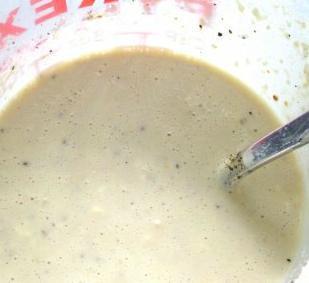 Finalmente, para terminar la salsa cesar, tienes que añadirle la mezcla inicial que tenías reservada y batirlo todo junto.