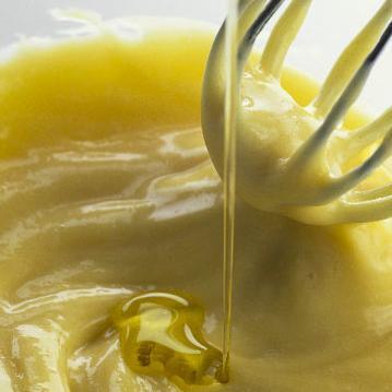 Para preparar la salsa césar lo primero que tienes que hacer es mezclar en un recipiente el zumo del limón con el vinagre y el aceite de oliva y se reserva.