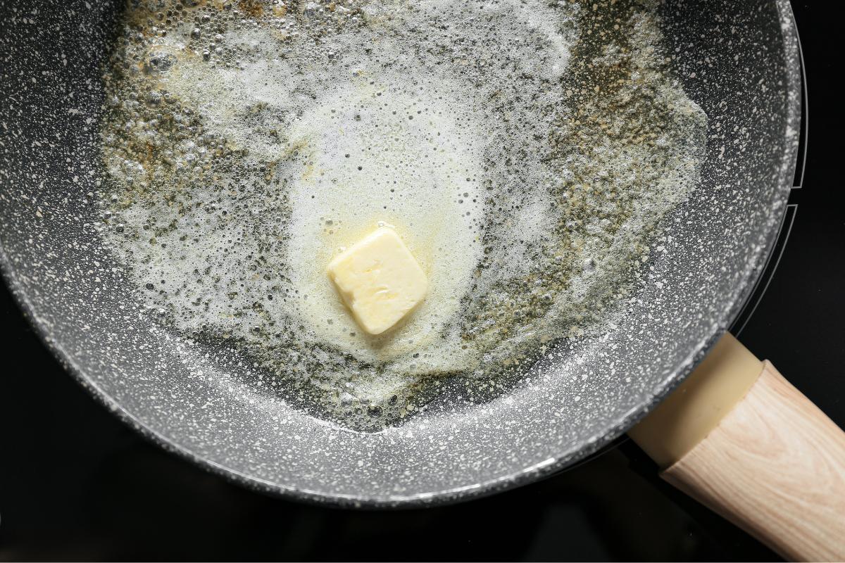 Calienta la mantequilla y el aceite de oliva en una sartén a fuego medio.