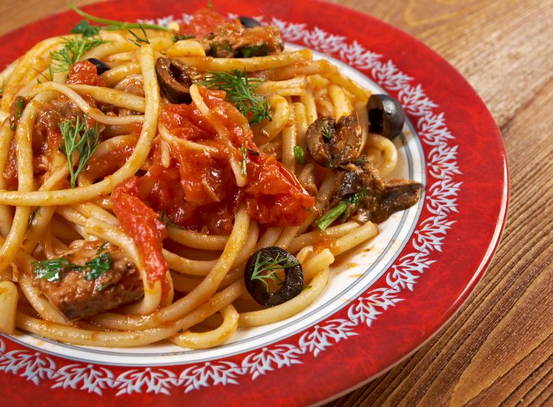 La salsa a la putanesca es casi un sinónimo de salsa italiana y se asocia al espagueti. Es mas, en realidad no se la conoce como “salsa putanesca” sino mas bien como espagueti a la putanesca. Por cierto, si les llamó la atención el nombre vamos a hablar un poquito de la historia de esta salsa antes de pasar a la receta porque es muy interesante y vale la pena. El nombre traducido del italiano es “espaguetis al estilo de las prostitutas”, algo llamativo ¿no?, bueno, no lo es tanto si viajamos en el tiempo hasta el siglo XIX y nos vamos hasta Nápoles, entramos al local de comidas y de divertimento adulto de la madamma Yvette la Francese y le pedimos su recién inventado “plato de pastas a la salsa del pescado”. Existen otras historias, como la de la asociación de las mujeres de la noche con el olor de la salsa (precisamente de las anchoas).