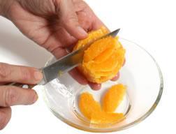 Se cortan la naranja y el limón a gajos