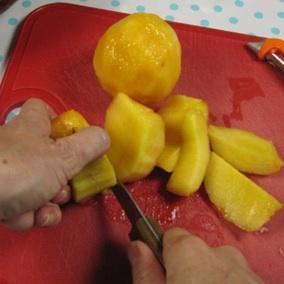 Se pela el melocotón y se corta a cuadraditos.