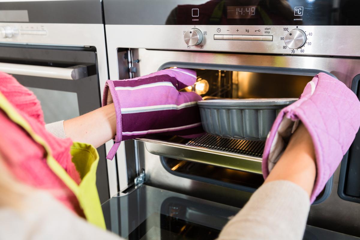 Hornea la tarta en la parte del centro del horno, con el calor de arriba y de abajo, a 180°C durante media hora, o hasta que comiences a verla dorada. Después saca la tarta del horno y apágalo, y deja que se refresque durante cinco minutos a temperatura ambiente.