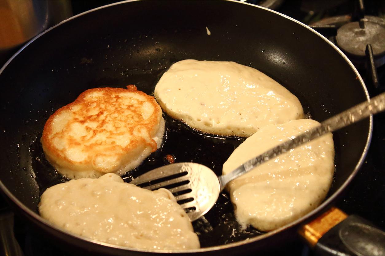 Una vez que hayas logrado una temperatura alta, deberás ir colocando la masa de tus tortillas de Carnaval con ayuda de un cucharón para ir creando la forma redonda. Puedes poner varias en la misma tanda de la sartén, con cuidado de que no se peguen las unas con las otras.
