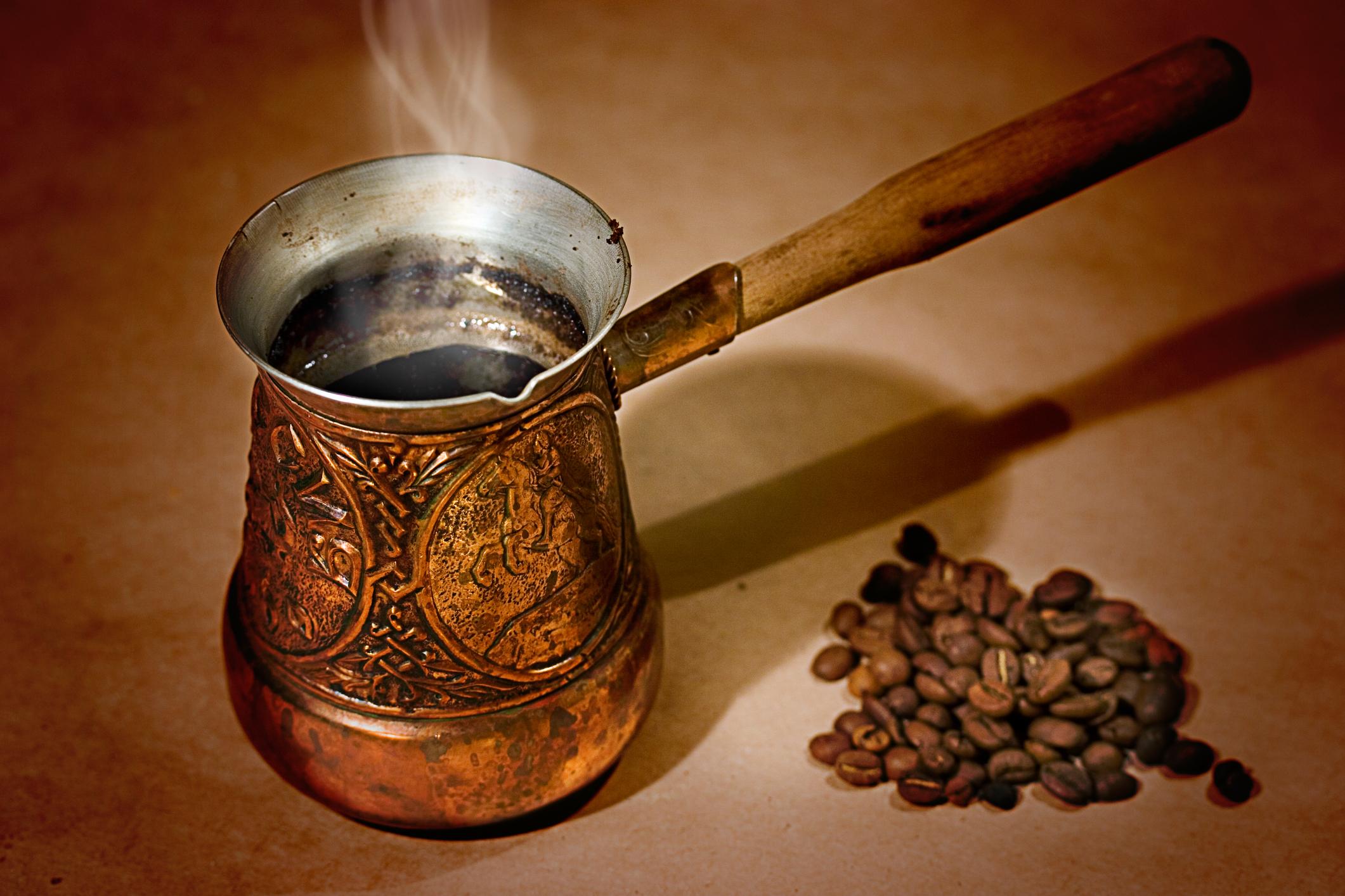 Lo primero que debes saber es que para hacer café turco se necesita un cezve, una jarra de cobre y latón con un largo mango típica de los países de Oriente Medio. Es en este pequeño recipiente donde se preparan uno por uno los cafés.