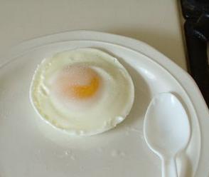 Después de estos 40 o 50 segundos ya tendrás un huevo frito perfectamente hecho en tu microondas, sin ensuciar y muy sano ya que no es frito en aceite. Para sacarlo del bol puedes usar una cuchara y poner encima del huevo frito un poco de pimienta negra o mantequilla.