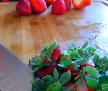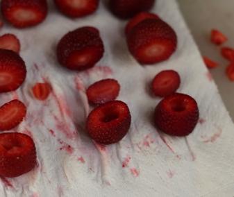 A continuación limpia la fresas y quita el rabito que hay en la zona superior de la fresa. Para limpiar las fresas puedes ponerlas debajo de un grifo de agua a poca presión y limpiandolas con las manos.