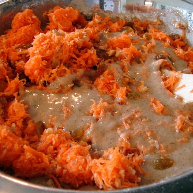 Luego, vierte la esencia de vainilla, mézclala y añade la zanahoria rallada. Si tienes nuez picada, incorpora 1/2 taza a la mezcla, le aportará un toque de sabor diferente. Mézclalo todo con unas varillas manuales e introduce la masa en el molde previamente untado con un poco de mantequilla o harina para evitar que se pegue. Introdúcelo en el horno y hornéalo durante media hora aproximadamente.