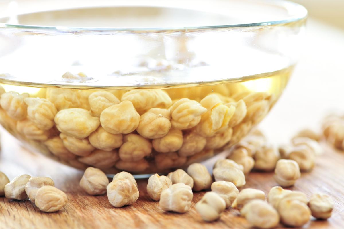 Lo primero que debes hacer en esta receta de potaje de acelgas con garbanzos es ponerlos en remojo de agua durante el día de víspera.