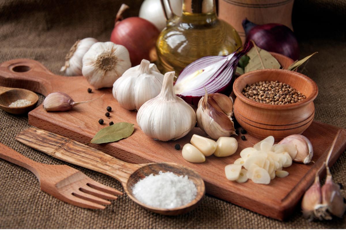 Cuando comiences la elaboración al día siguiente, pon una olla con agua abundante en el fuego y añade una cebolla, los dientes de ajo previamente pelados, el hueso de jamón y una hoja de laurel. Debes lavar tanto el hueso de jamón como el laurel antes de añadir ambos ingredientes en la olla. Servirán para aportar el toque de sabor deseado al plato.